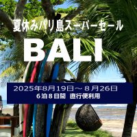 BALI Summer Super Sale2025 夏休みバリ島スーパーセール夏休みバリ島サマーセール、出発日、人数限定のお得なバリ島ツアーです。成田より直行便利用!バリ島ではサーフガイドの手配も可能です。夏休みはお得にバリ島へ!